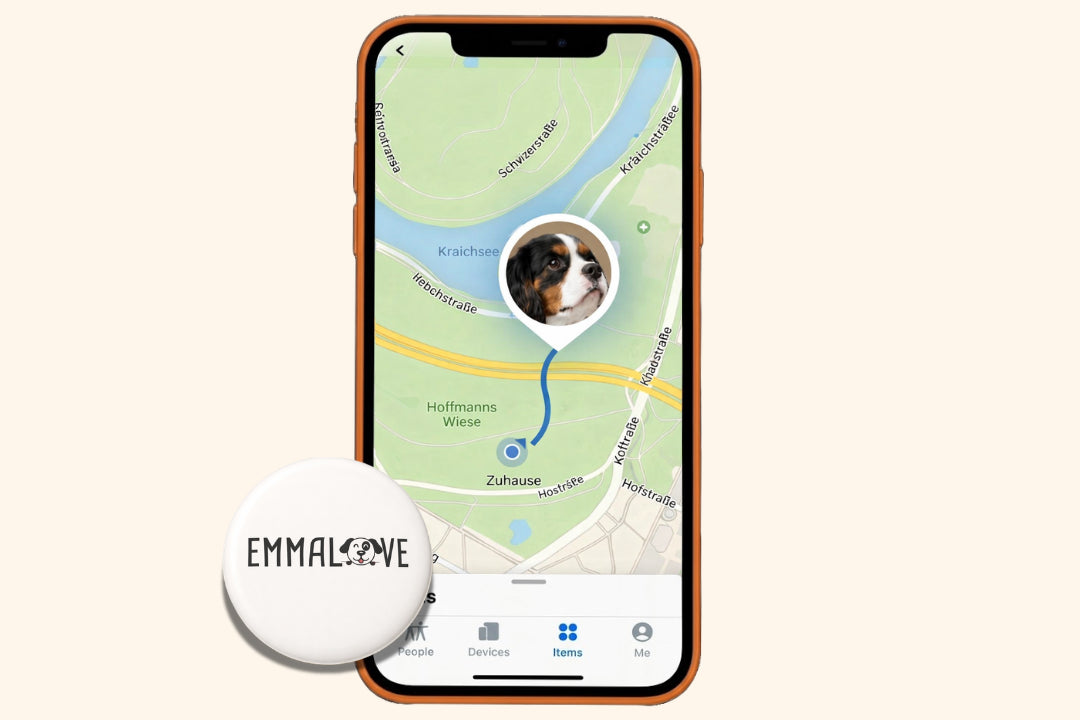 Das ultimative Sicherheits-Set für deinen Hund: Der smarte Emmalove Tracker inklusive passendem, sicherem Halsband. Schluss mit teuren monatlichen Abo-Gebühren und klobigen Geräten! Unser federleichter Tracker (22g) sitzt fest und sicher in der integrierten Halterung des mitgelieferten Halsbandes. So wird ein Herausfallen oder Verschlucken beim Toben zuverlässig verhindert. Die Ortung erfolgt präzise über das weltweite Apple und Android "Wo ist?"-Netzwerk. Mit einer Batterielaufzeit von einem Jahr bist du immer startklar für entspannte Abenteuer.